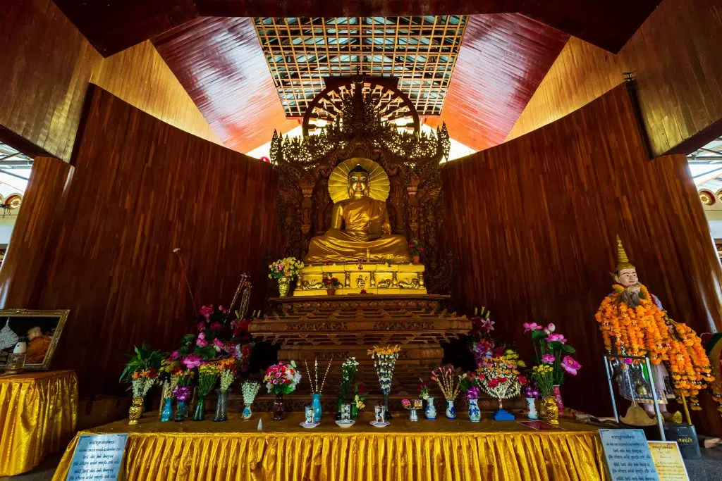 ThajskoKanchanaburi - Sangkhlaburi (218 km): 3 hodiny Po skorých raňajkách v hoteli sa vydajte na návštevu vojnového cintorína a thajského múzea železnice v Barme. Potom choďte na železničnú stanicu Bridge Kwai Bridge na krátku jazdu vlakom po neslávnej „Death Railway“, prechádzajúcou cez drevené viadukty pozdĺž rieky Kwai, s výhľadom na úchvatný výhľad na roklinu Kwai. (Vlak odchádza o 10:50 a príde o 11:57). Obed v miestnej reštaurácii. Po obede ochod do Sangkhlaburi. Navštívte dedinu Mon, miestny trh a dostanete sa k drevenému mostu Mon. Ukončite svoj deň v krásnej kaviarni Graph Cafe pri večernej káve. Prenocovanie v Sangkhlaburi.