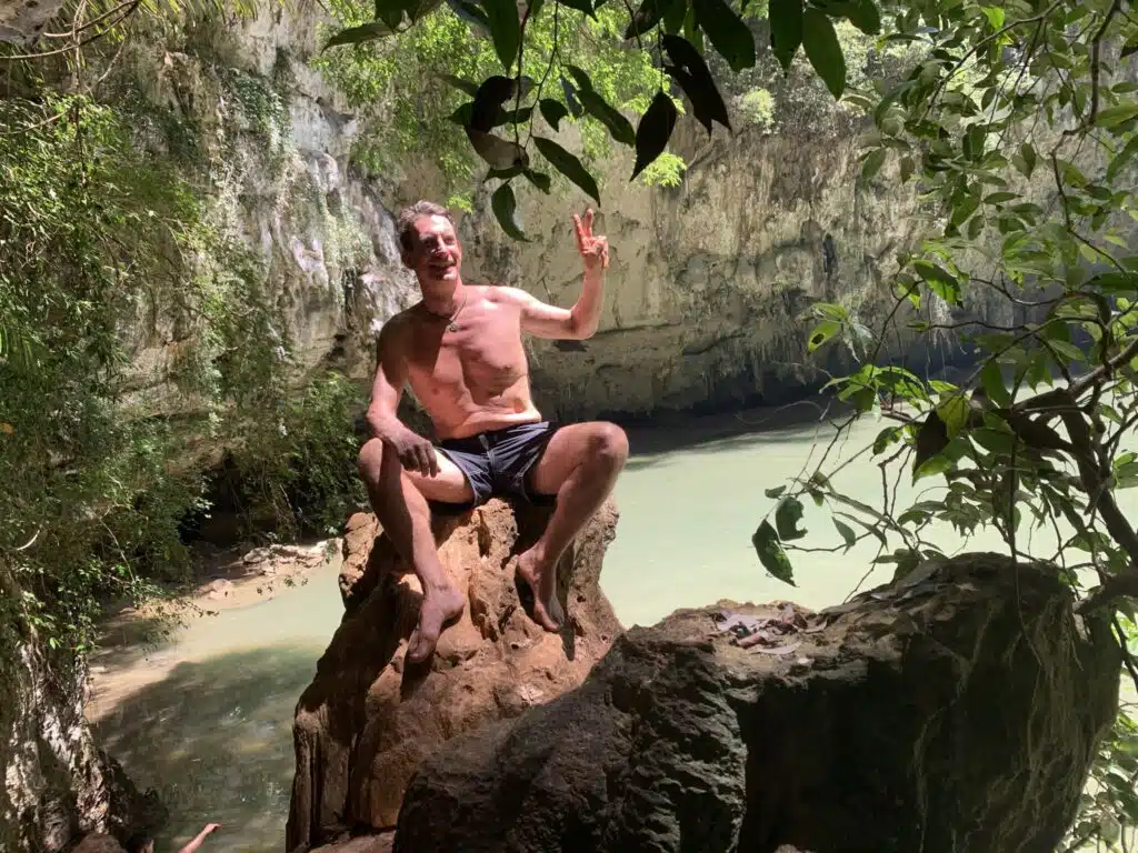 Kto si bude chcieť spraviť známu fotku "visím na skale nad Railay Beach", tak prejde s inštruktorom celú "netopieriu jaskyňu" Bat Cave a na jej konci sa zlaní do lesa a prejde späť na pláž. Menej zdatní si spravia scénické fotografie z obrovskej vchodovej haly jaskyne, cez otvory smerujúce na pláž a vápencové útvary a vráti sa to istou cestou po pláži do hotela.