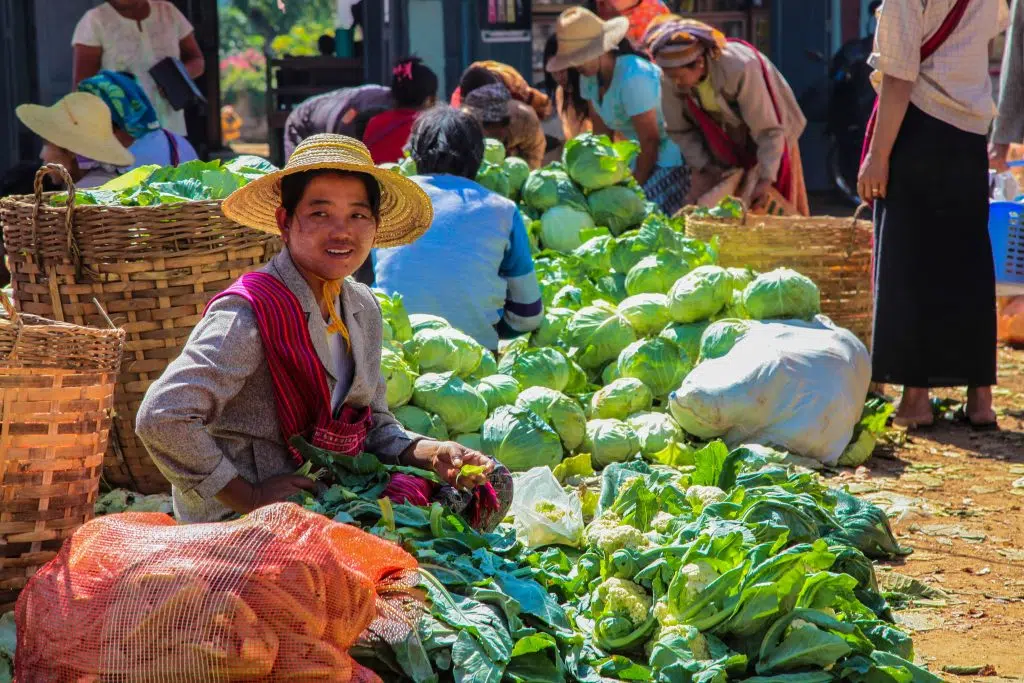 MjanmarskoDnes prehliadka mesta začína o 08:00 návštevou ranného trhu pri jazere. Trh strieda svoju polohu okolo jazera v dedinách v päťdňovom rytme a navštevujú ho obyvatelia jazier a okolité kmene kopcov, ktorí prichádzajú na predaj a obchodovanie so svojím tovarom. (Poznámka: Trh je každý deň okrem temného mesiaca a splnu).