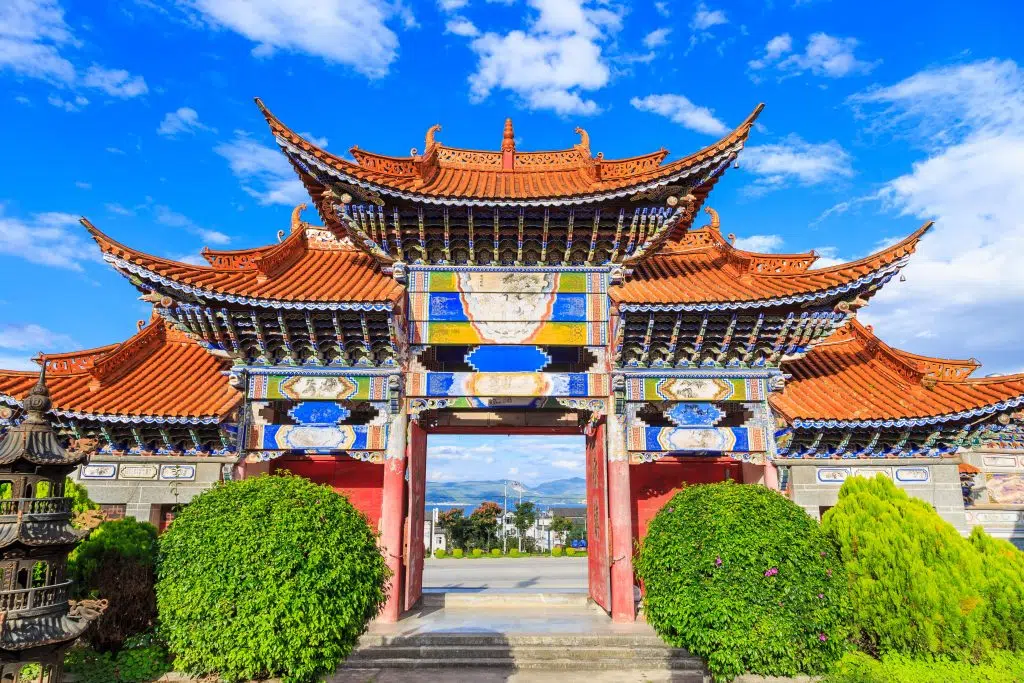 Palác Mu Palace z čias Mongolskej Dynastie (13.storočie), architektúra Ming a Qing podobná ako v Pekingu v "Zakázanom meste".